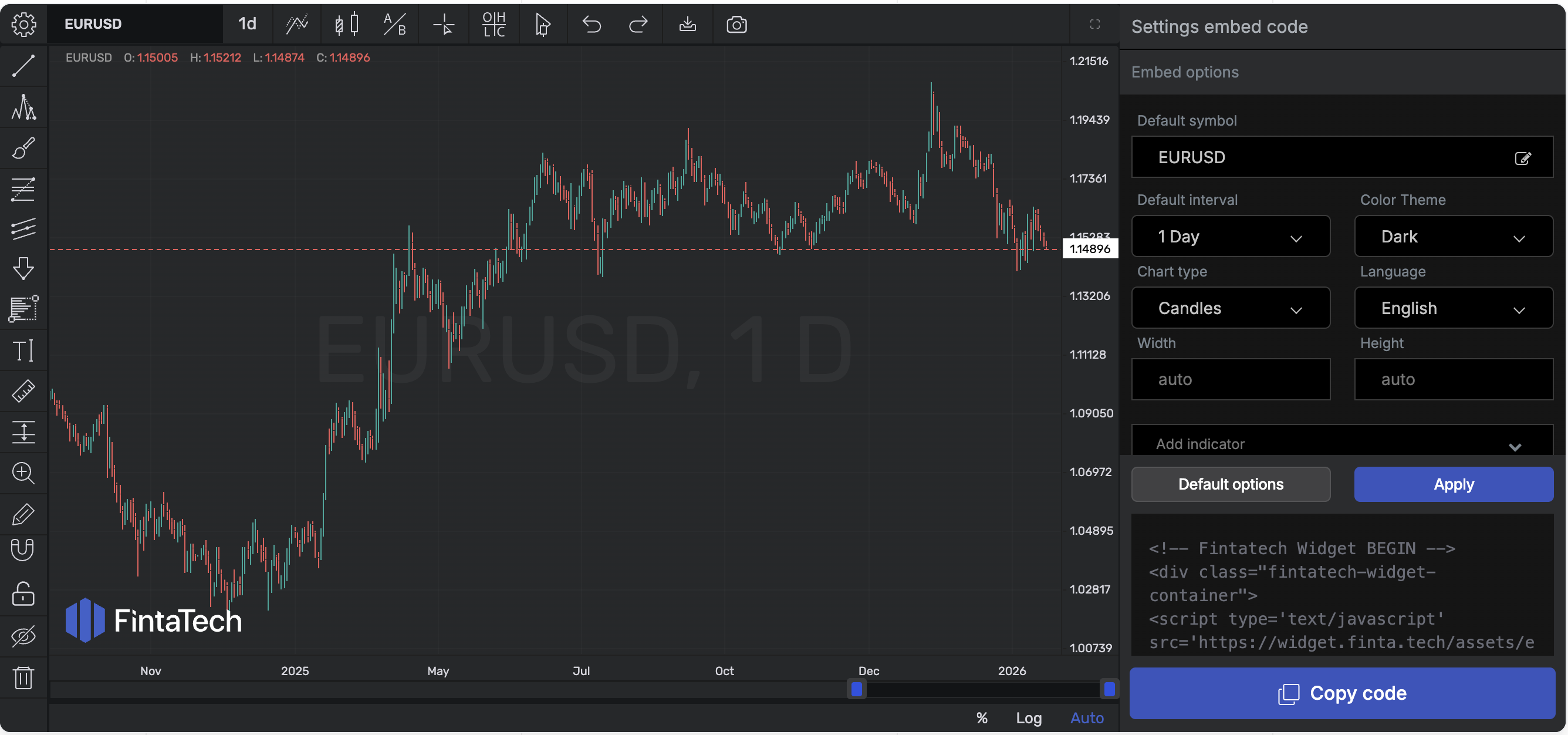 A next-generation HTML5 charting library for building interactive, professional-grade trading platforms. FintaChart delivers multi-asset data support, real-time trading, and full customization — giving developers and traders everything they need to visualize markets. It includes multi-chart viewing layouts, social sharing options, and white-label branding for a seamless user experience. Easy to integrate into any financial application with complete customization flexibility.